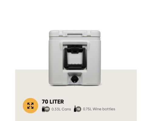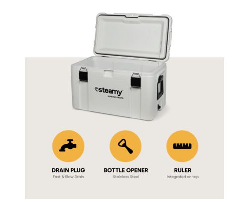 La Steamy Marine Pro a une capacité de 70 litres, ce qui est plus que suffisant pour toutes vos activités. Grâce à sa grande capacité de stockage, elle offre de la place pour toutes vos boissons, snacks et autres, tandis que l'isolation de haute qualité garantit que tout reste à la bonne température.