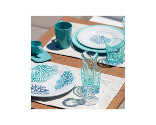 L’assiette en mélamine avec décoration de coraux est une vaisselle idéale pour le bateau.