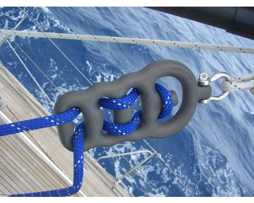 Facilité d'installation : Léger et peu encombrant, le Gyb'Easy s'installe facilement sur la bôme grâce à une manille frappée sur un pontet. Il est utilisable aussi bien sur les gréements modernes qu'anciens. Pour s'adapter aux différents plans de pont, deux configurations d'installation sont possibles: soit en mode palan (un renvoi au cockpit), soit avec deux renvois vers le cockpit.