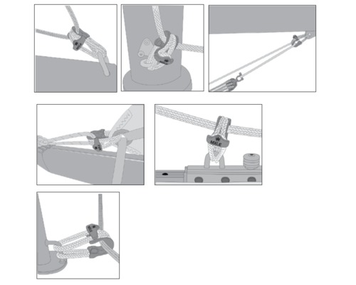 Elle s’installe donc très facilement et rapidement sur tout type d’ancrages (cadènes, têtière etc…). La retenue de cordage permet de retenir le cordage à l’intérieur lorsque celui-ci n’est plus sous tension.