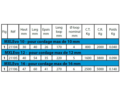 La MXLEvo se destine aux applications sous fortes charges (à faible vitesse de circulation du cordage).