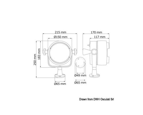 Accueil » Catalogue » Electricité » Eclairage exterieur » Projecteur de pont » OSCULATI Projecteur 24V 100W support plat-pont
