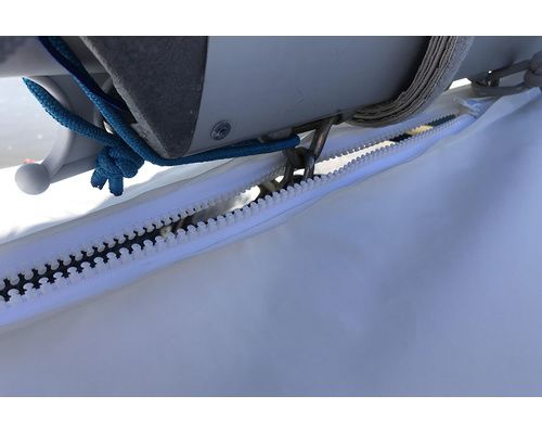- Fixation par sangle sous la bôme ou pose simple sur la bôme, liaison aux filières par garcettes incluses