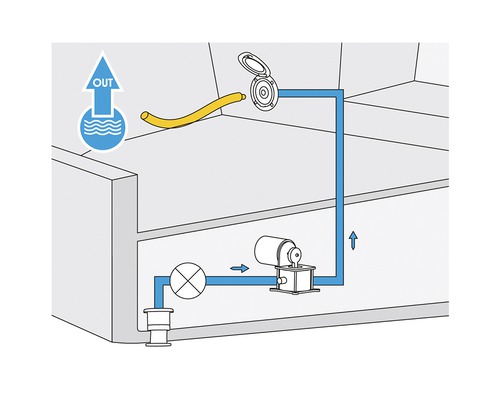 Le boitier sortie d'eau permet par l'intermédiaire d'une pompe et d'un passe coque l'utilisation d'eau de mer sous pression sur le pont.