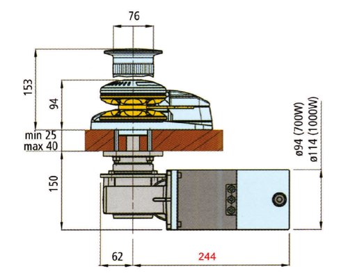 Guindeau électrique 1000W à axe vertical avec barbotin chaîne Ø 10 mm. Pour bateaux de 7 à 14 m
