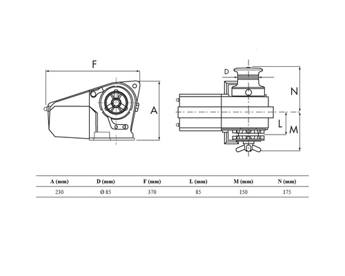 Guindeau électrique 12V 700W à axe horizontal avec barbotin Ø6mm
