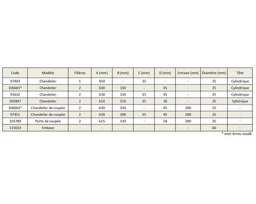Chandelier bout rond 610 mm avec perçage | Tête sphérique