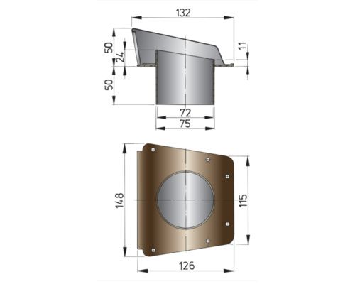 Incl. plaque de base en plastique, protection contre l'eau, raccord de tuyau de 76 mm.