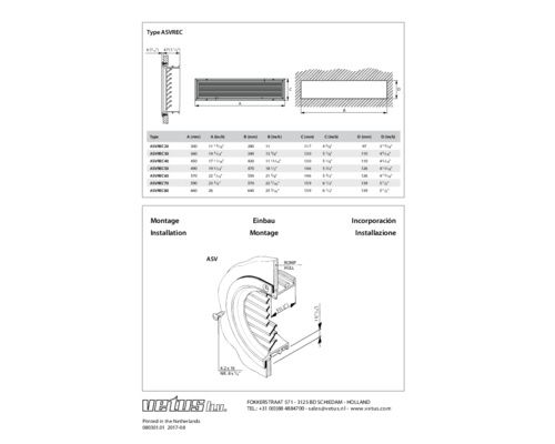 VETUS Prise d'aspiration rectangulaire type ASVREC 20
