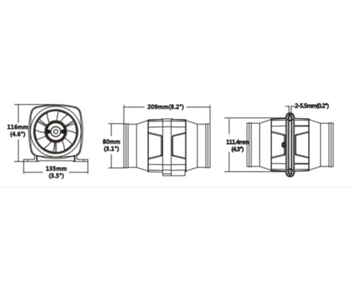 Ventilateur de cale 12V - 221m3/h - pour tuyau Ø 75 mm