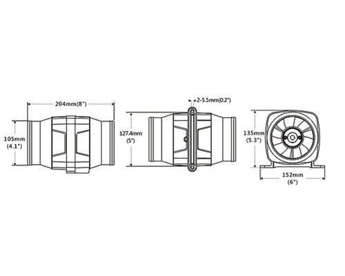 Ventilateur de cale 12V - 459m3/h - pour tuyau Ø 105 mm