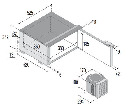 L'unité de réfrigération est indépendante du conservateur et peut être installée dans un local ventilé à une distance maxi de 2 m.