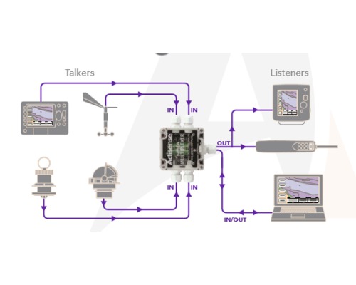 Deux sorties ISO-Drive vous permettent en plus de créer deux débits émetteurs en réception. Le multiplexeur NMEA Actisense NDC-4 fournit un accès à toutes les sources de données NMEA 0183, et permet au PC connecté par USB de lire et d’ajouter des flux de données combinées.