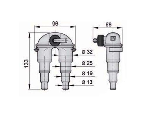 Permet de connecter des tuyaus de diamétres 13; 19, 25 ou 32 mm.