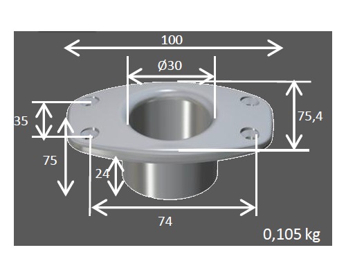 Ecubier pour montage plat pont en aluminium anodisé, passage 30 mm