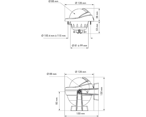 - Montage : sur étrier fixé sur une surface horizontale ou inclinée.