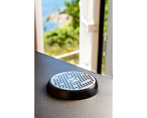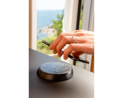 Chargeur de portable sans-fil, étanche et étudié pour être utilisé aussi bien en intérieur qu'à l'extérieur.