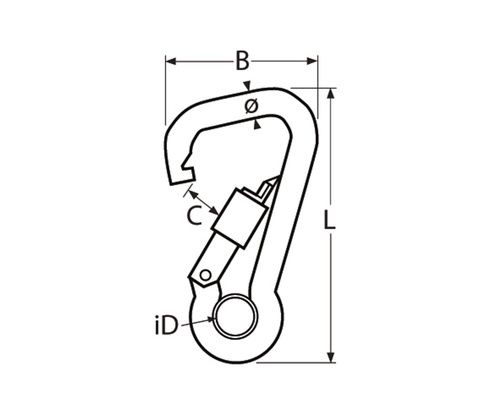 Mousqueton asymétrique avec écrou de sécurité | lg 120 mm
