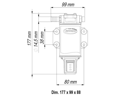 Tension (V) | Absorption (A) | Fusible (A) | Amorçage (m) | Débit diam.6 (l/h) | Débit diam.8 (l/h) | Débit diam.13 (l/h) | Tuyau (mm) | Pression (bar) | Puissance moteur (W) | Sortie | Poids (kg) |