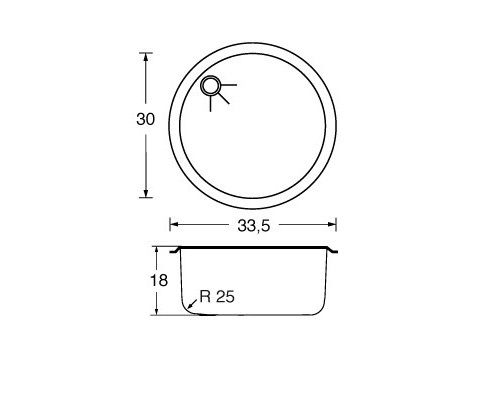 Dimensions extérieurs ø x prof.: 335 x 180 mm.