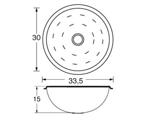 Dimensions extérieurs ø x prof.: 335 x 150 mm.