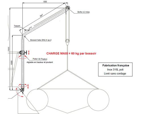 Possibilité d'être utilisé par paire (bossoir), pour une capacité de charge de 120 Kg.