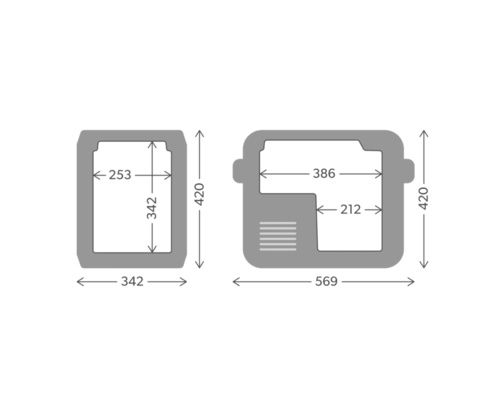 Le volume total 25 l peut contenir 40 cannettes ou cinq bouteilles de 1,5 l