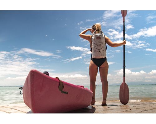 Ce modèle se distingue par sa modularité unique : grâce à des bretelles amovibles, il peut rapidement passer d’un sac à dos traditionnel à un sac porté à la main, avec des poignées latérales pratiques. Il peut être attaché facilement à un paddle, un kayak, un vélo ou une moto. Sa large ouverture vous offre la possibilité de ranger aisément votre matériel et dispose d’une poche suspendue équipée d’une fermeture à glissière où ranger vos petits objets en toute sécurité