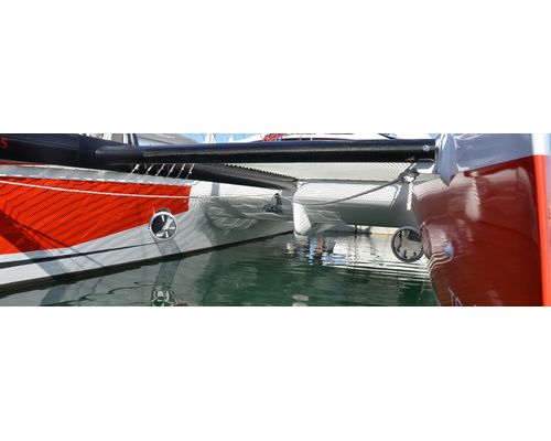 La trappe de survie Cristal est équipée de poignées en fonderie d'aluminium et livrée avec une barre de verrouillage, permettant d'empêcher l'accès par l'extérieur lors de l'amarrage.