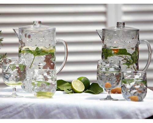 Le pichet à eau est fabriqué en méthylstyrène, un matériau de haute qualité résistant aux chutes, incassable, et qui ne se raye pas.