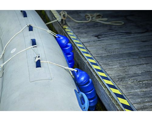 Alors qu’un pare-battage traditionnel s’écarte du flotteur et peut finir par glisser, le pare-battage articulé épouse parfaitement la forme du bateau et reste en position idéale pour assurer la protection.