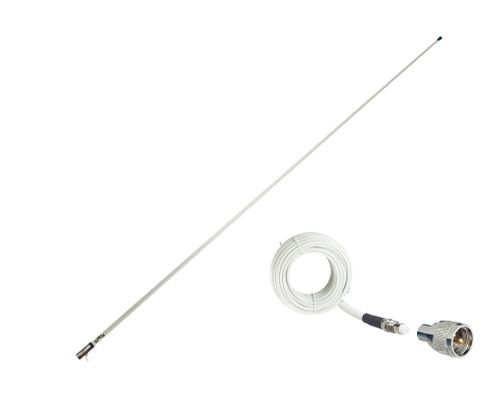 2,4m Antenne VHF à haute performance avec embase en acier inox, passe-fil intégrée en acier inox, câble coaxial de 7,6m avec connecteur FME pré-câblé et adaptateur PL-259.
