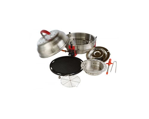 C'est un concept novateur de grill - barbecue + cuisinière + rôtissoire (tout en un). Vous pouvez griller, rôtir, poêler, cuire, fumer et l'emmener partout.