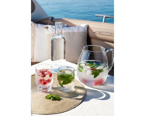 Le verre à eau Bahamas est fabriqué en méthylstyrène, un matériau de haute qualité, résistant aux chutes et incassable. De plus, il ne se raye pas.