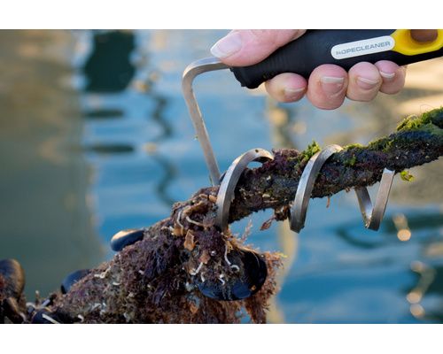 Vous pouvez facilement enrouler le Ropecleaner sur les cordes de différents diamètres, puis le pousser à travers. La spirale métallique de la section carrée possède des parties intérieures affûtées, qui coupent et retirent efficacement divers coquillages, coraux et algues.
