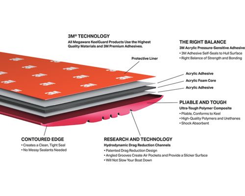 La protection d'étrave KeelGuard protège contre les abrasions du sable, les rochers, les rampes de béton, les massifs d'huitres.