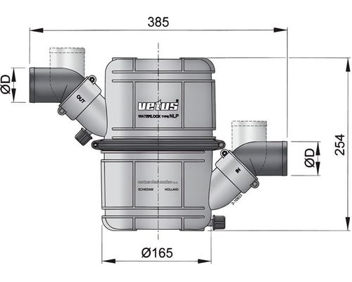 Les waterlocks NLP possèdent deux chambres, séparées par une plaque horizontale avec un tuyau ascendant au milieu. Comparés aux waterlocks mono-chambre, ces waterlocks NLP apportent une diminution du bruit beaucoup plus efficace. Comme la chambre supérieure peut pivoter à 360° environ et, que les raccords d'entrée et de sortie sont tous les deux orientables à 360°, l'installation du système d'échappement dans la chambre moteur, (toujours trop étroite!), est devenue beaucoup plus simple.