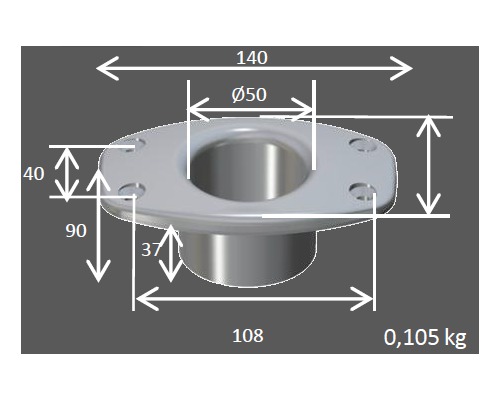 Écubier pour montage plat pont en aluminium anodisé, passage 50 mm