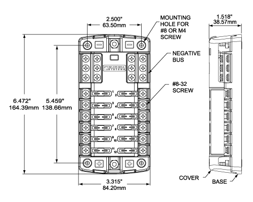 Boitier porte fusible ATO/ATC 12 circuits avec bus négatif intégré.