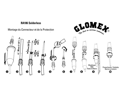 Elles sont toutes équipées du connecteur spécial Glomex “RA106 solderless” étanche et sans soudure pour en faciliter l'installation.