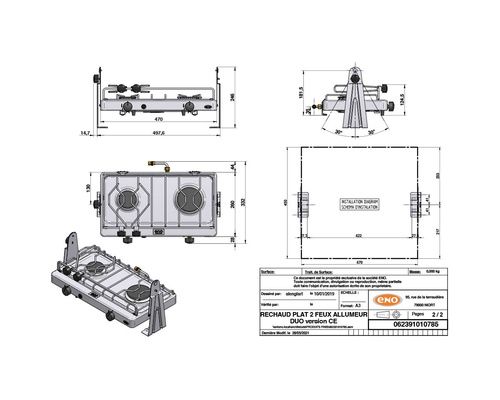 Performant et robuste, le réchaud ENO DUO est muni de deux brûleurs ( 1750 W et 2500 W ) fonctionnant aussi bien au propane qu'au butane. Sécurité par thermocouple. Fabriqué en inox, il est livré avec un kit balancelle pour simplifier son utilisation en bateau et particulièrement à la gite, ou les deux serres-casseroles se révélerons indispensables. Équipé d'un allumage électronique.