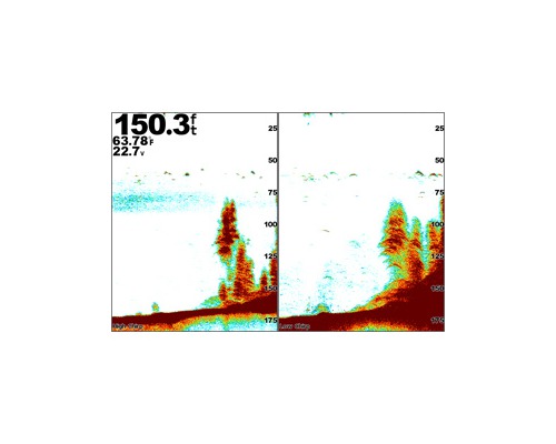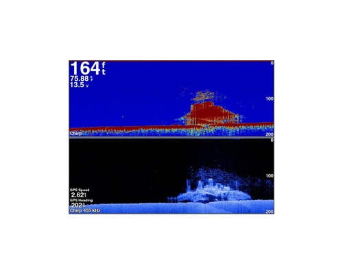 Au final, c’est comme si vous aviez 2 sondeurs scrutant simultanément ce qui se passe sous l’eau sur des bandes de fréquences différentes (sonde vendue séparément).