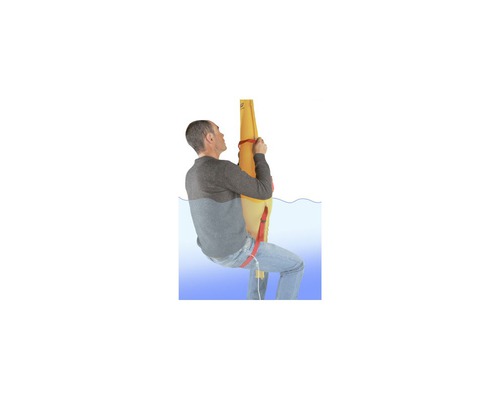Elle est équipée d'une assise en sangle réglable pour supporter le poids d'un homme à la mer (150N) et d'un feu à déclenchement automatique avec 8h d’autonomie.