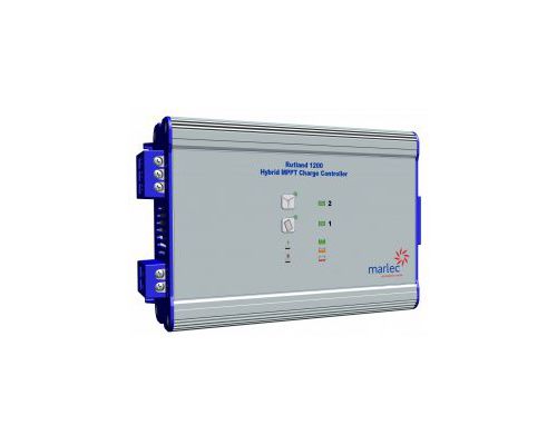 Le Rutland 1200 comprend le régulateur pour charger la batterie jusqu'à 2 batteries séparées. Il s'agit d'un régulateur hybride conçu pour le vent et l'énergie solaire qui accepte les entrées du Rutland 1200 et jusqu'à 20 A de panneaux solaires.
