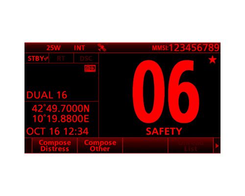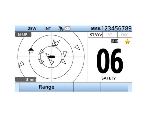 La combinaison d'un clavier directionnel et de touches souples simplifie les commandes. Les fonctions les plus courantes sont accessibles grâce au clavier (situé au bas de l'écran), Le clavier large à 10 touches permet de facilement taper un numéro de canal, de saisir un numéro MMSI, une identité, etc.