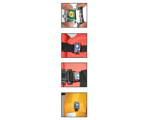 Lampe flash individuelle petite et compacte, activation automatique au contact de l’eau. Compatible avec toutes les ceintures de largeur 20-40mm, tout en assurant la sécurité contre les mouvements de panique. Batterie au Lithium, durée de vie de 5 ans. 8 heures d’éclairage assurées depuis l’activation du feu. Etanche et ultra résistante grâce à sa coque en Epoxy. Intensité lumineuse >1,2cd. Certifiée SOLAS