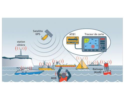 Les autres informations disponibles comme le nom du navire, l'indicatif radio, son type et ses dimensions, ainsi que le numéro MMSI, sont également transmises automatiquement par l'ATB1.