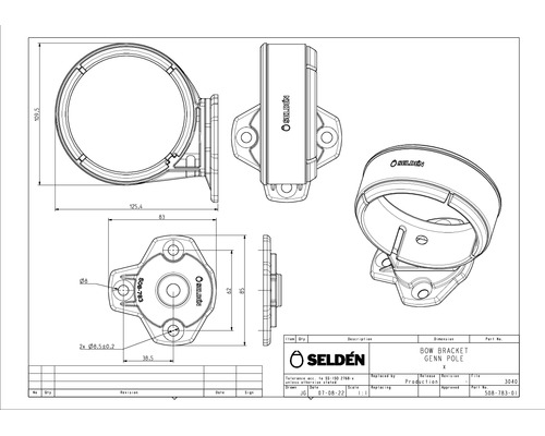 SELDEN Anneau d'étrave pour bout dehors Ø75mm à boulonner