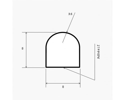 Joint adhésif de section 8mm à la base et sur la partie arrondie